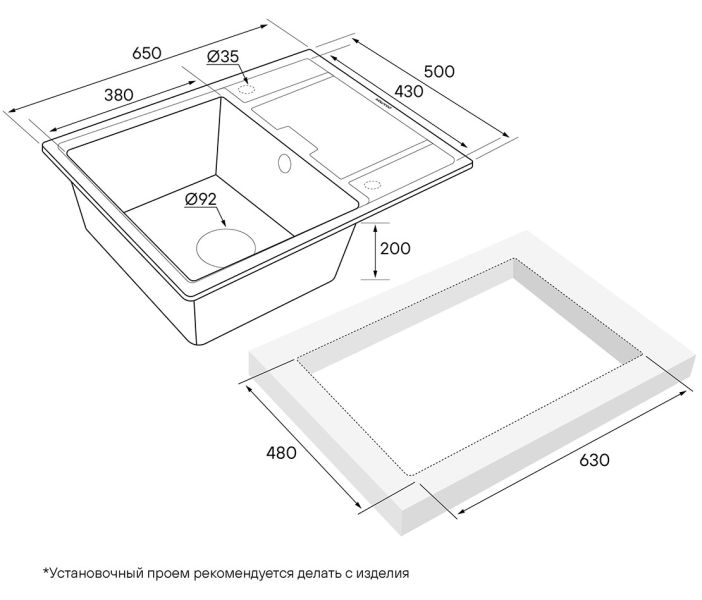 Материал мойки устойчив к механическим повреждениям, а также выдерживает температуру до 180 градусов.