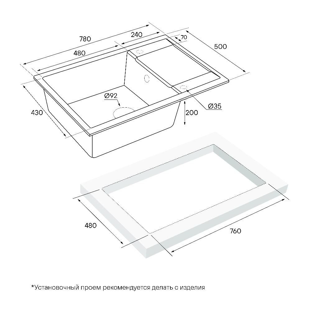 Материал мойки устойчив к механическим повреждениям, а также выдерживает температуру до 180 градусов.