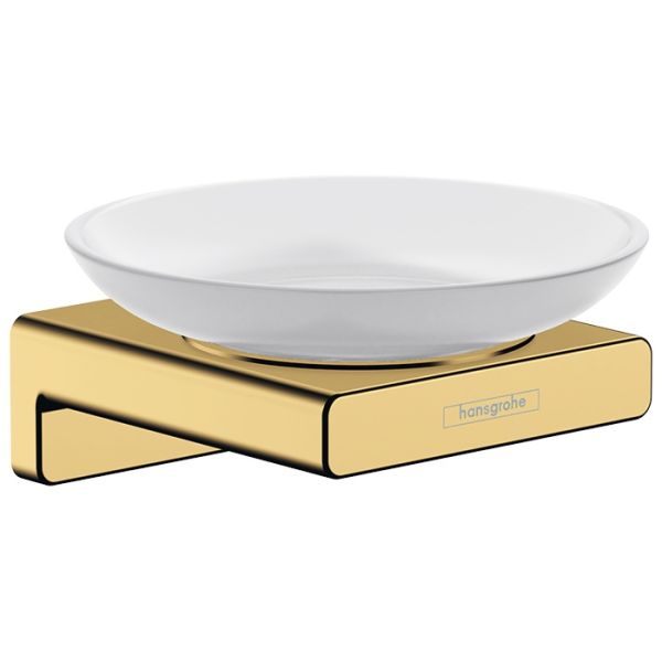 Hansgrohe AddStoris 41746990 Мыльница подвесная: металлический держатель и чашка из матового стекла.
