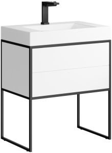 Напольная тумба под раковину Clarberg Logic 70 LOG0107N с двумя ящиками. Главная особенность коллекции - это применение алюминиевого анодированного профиля в чёрном цвете.Технические данные:Цвет: белый.