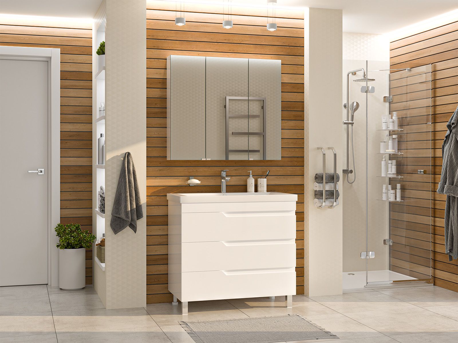 Напольная тумба под раковину – это не просто элемент мебели, но настоящее произведение искусства, которое сочетает в себе функциональность и изысканный дизайн. Изготовленная из высококачественных материалов, она гарантирует долговечность и устойчивость к воздействию влаги.Удобная система хранения позволяет размещать все необходимое для гигиенических процедур, а её продуманные размеры отлично вписываются даже в небольшие помещения. Стильные ручки и элегантные фасады придают тумбе особый шарм, а разнообразие цветовых решений позволит выбрать модель, соответствующую любому интерьеру – от классического до модерн.Мягкие линии и непринужденные формы делают тумбу неотъемлемой частью ванной, превращая её в любимое место для отдыха. Совершенное сочетание эстетики и практичности позволяет создать гармоничный и стильный интерьер, что делает напольную тумбу для ванной комнаты идеальным аксессуаром для любого дома