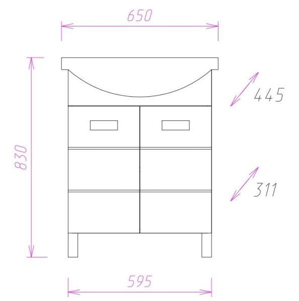 Размеры тумбы без учета раковины и ножек: 59x31x68 см.