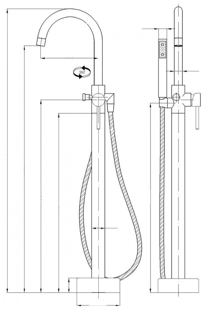 Смеситель BRAIES напольный для отдельностоящей ванны BOCH MANN BM7772 Картридж SCCДушевая штанга: нержавеющая стальДушевой шланг 1,5м
