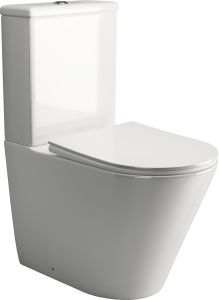 Напольный пристенный унитаз с бачком HighLight Rimless, двойной смыв 3/6, нижняя подводка глубокий смыв, горизонтальный (универсальный) выпуск, с крепежом, ультра тонким сидением с функцией плавного закрытия, дюропласт