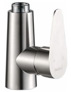 Смеситель для кухни бренда Haiba.Изготовлен из нержавеющей стали.Картридж 35 мм.Укомплектован аэратором.Гибкая подводка 40 см.С поворотным изливом.