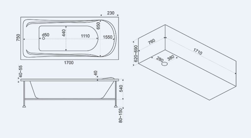 Имеет универсальный белый цвет, отлично подходящий для интерьера любой ванной комнаты. Длина панели BAS Мальта составляет 1700 мм, высота - 590 мм. В комплект поставки входят крепления, необходимые для простого и быстрого монтажа к ванне.