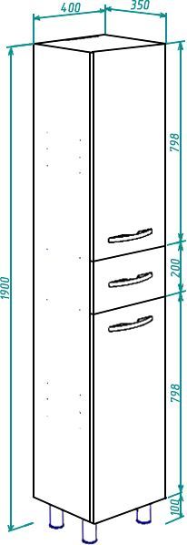 Вместительное хранение: При компактной ширине (40 см) пенал использует высоту (190 см), предлагая пространство для полотенец, косметики и бытовых мелочей. В зависимости от модификации включает бельевую корзину.