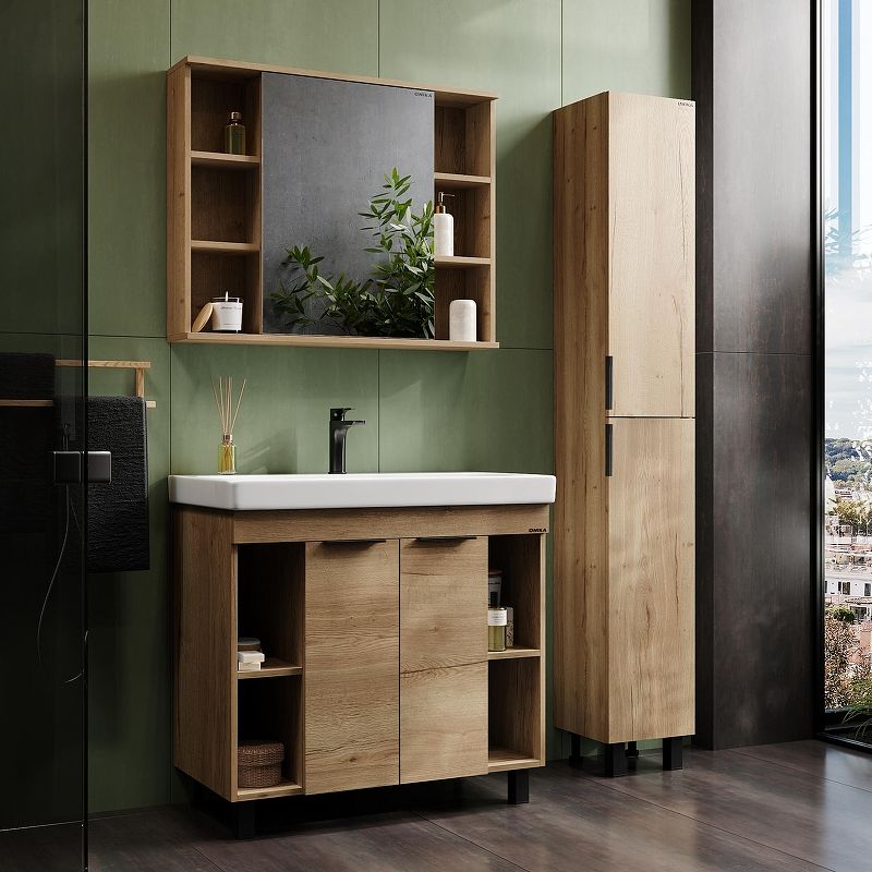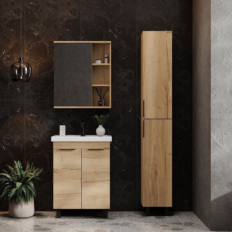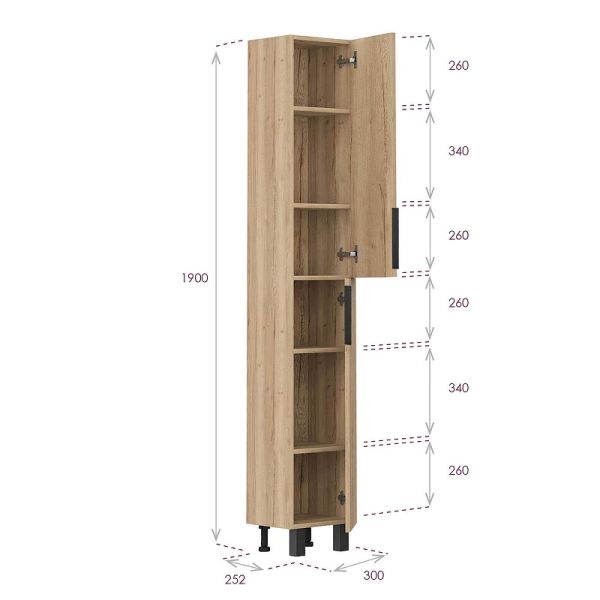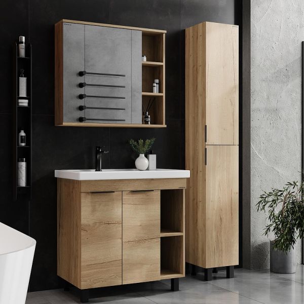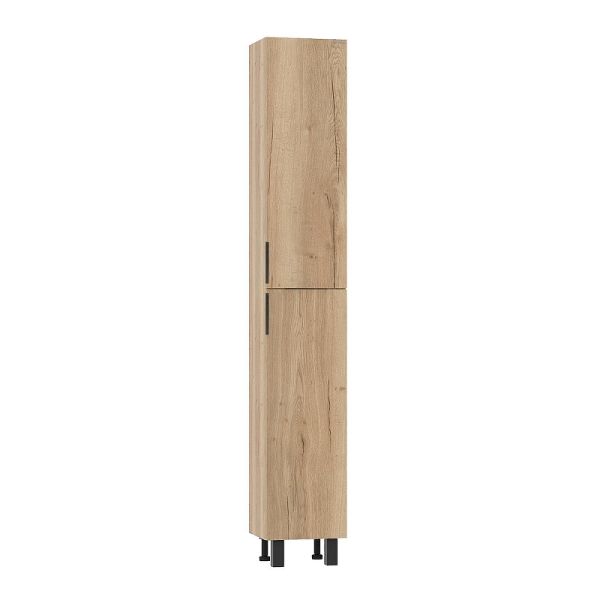 Напольный пенал для ванной комнаты Onika ЛЕГРАН 30 — это сочетание насыщенного древесного декора и благородства металла: роскошная текстура и натуральный цвет дуб галифакс дают теплоту, а матовая металлическая ручка добавляет урбанизма и солидности.