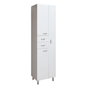 Шкаф-колонна напольный, справа - отделение для халатов с распашной дверью, слева -две дверцы и два выдвижных ящика. В нижнем и верхнем отделениях - по одной внутренней полке. Ящики - на шариковых направляющих, петли со встроенным доводчиком, ручки - 5шт, крючок - 1шт, ножки хром - 2 шт, ножки пластик -2шт. Выпускается только в правом исполнении