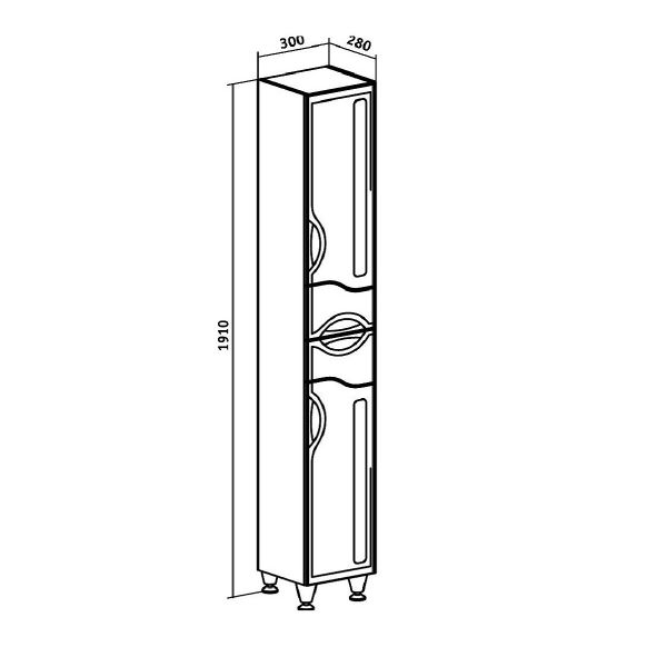 Шкаф-колонна напольный с двумя распашными дверками и выдвижными ящиками. Дверцы со стеклянными вставками. В нижнем и верхнем отделениях - по одной внутренней полке. Петли со встроенным доводчиком, ручки врезные - 4шт, ножки хром -2шт, ножки пластик -2шт. Выпускается только в правом исполнении.