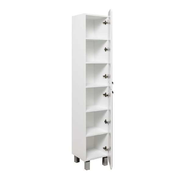 Шкаф-колонна напольный универсальный с двумя распашными дверками. В верхнем и нижнем отделениях - по две внутренние полки. Петли со встроенным доводчиком. Ручки- 2шт, ножки хром - 2 шт, ножки пластик - 2шт.