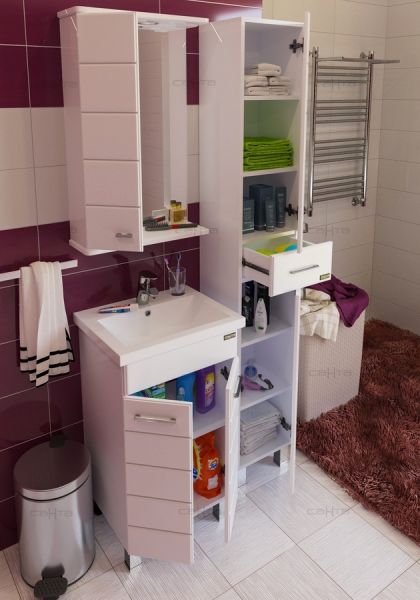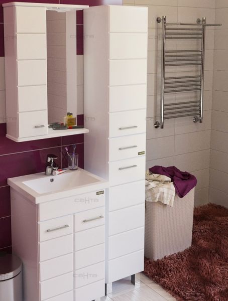 Шкаф-пенал СанТа отличное решение для создания комфортной атмосферы в любой ванной комнате. Напольный способ установки производится непосредственно на пол, при этом конструкция максимально устойчива при серьезных физических нагрузках. В производстве используют только качественные влагостойкие материалы (ВЛДСП), в составе которых полностью отсутствуют опасные вещества. Серия Вегас отличается превосходным дизайном с соблюдением всех существенных элементов современного стиля. Основным цветом, в котором выполнен шкаф-пенал СанТа является белый, безупречно впишется в любой дизайн проект. Шкаф-пенал предусматривает удобную и вместительную систему хранения, состоящую из дверей.Страной бренда СанТа является Россия, все товары производятся с выполнением соответствующих стандартов качества, что позволяет быть полностью уверенными в долговечности и надежности. Шкаф-пенал СанТа поможет сделать уютным любой интерьер и создать идеальную ванную комнату.