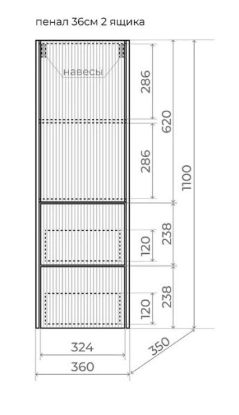 • Шкаф-пенал (ш/г/в): 360x350x1100 мм