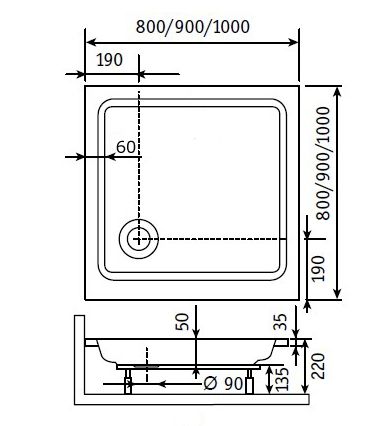 Акриловый поддон для душа RGW STYLE KV 800х800х220 Подробнее
