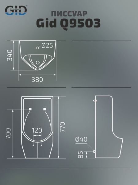 Подвесной писсуар Gid Q9503 91107 белый 38x34x77
