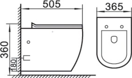 - Прилегание унитаза к стене:вплотную