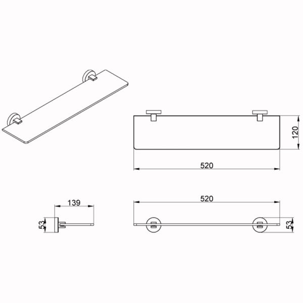 Полка AZARIO NESSY AZ-73103 стеклянная 52 см купить