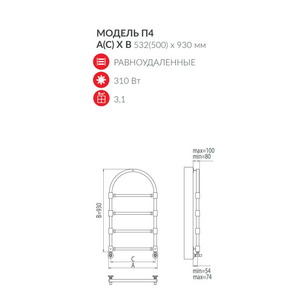 • Равномерный нагрев: 4 секции общей мощностью 310 Вт создают оптимальную конвекцию, мягко прогревая помещение и исключая перепады температур.
