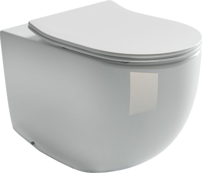 Напольный пристенный унитаз-соло Metropol Rimless, глубокий смыв, горизонтальный (универсальный) выпуск, с крепежом, ультра тонким сидением с функцией плавного закрытия, дюропласт