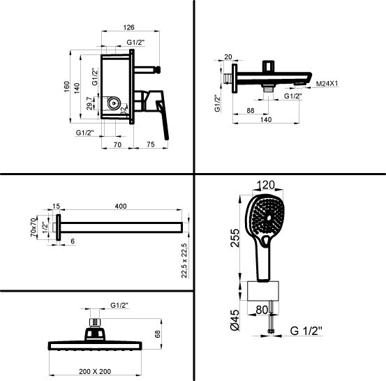 • Размер верхнего душа, мм 200
