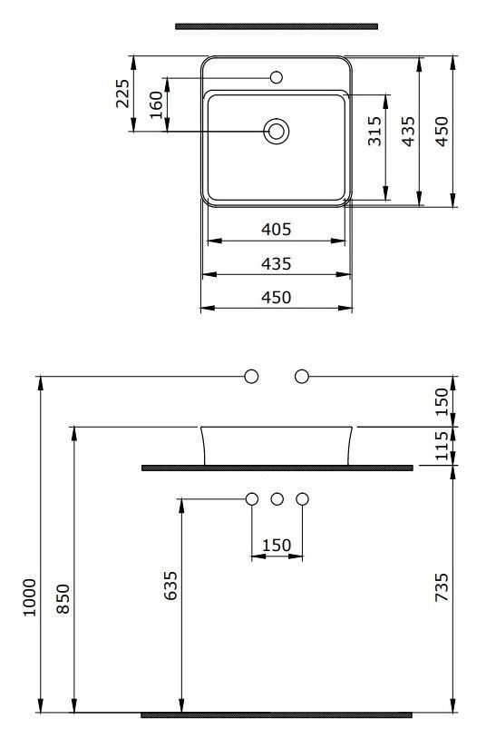 - Отверстия под смеситель:1