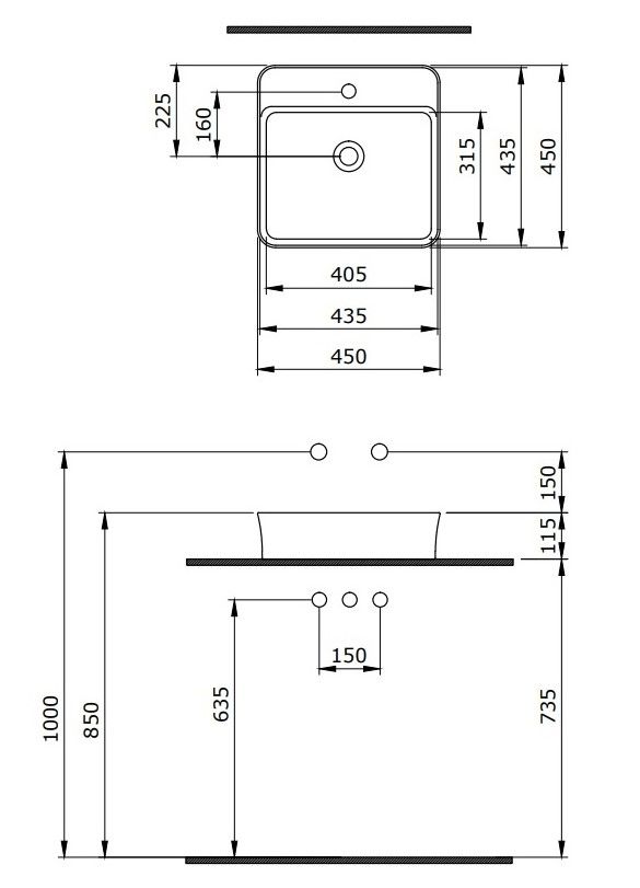 • Отверстия под смеситель: