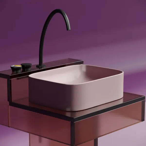 Умывальник чаша накладная прямоугольная (цвет Розовый Матовый) Element 505*380*150мм