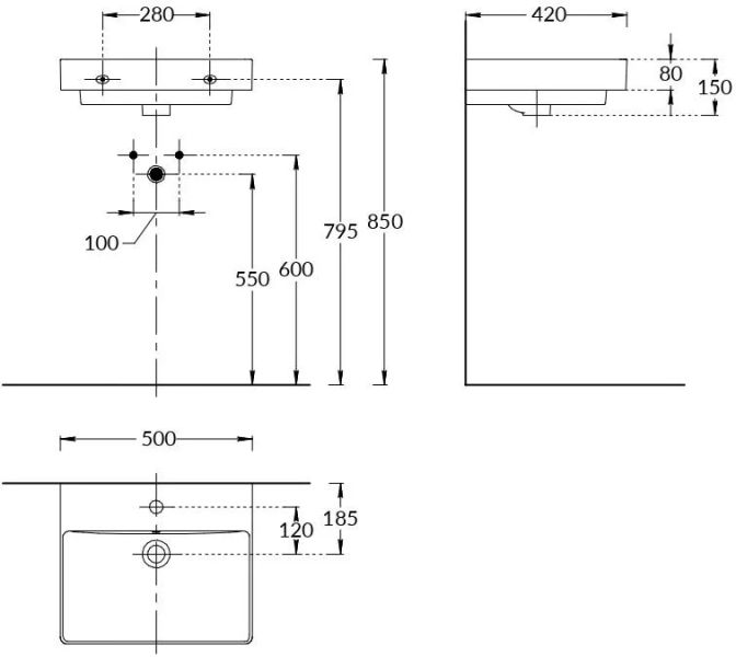 Раковину можно использовать вместе с тумбами PRO шириной 50 см, с пьедесталом, полупьедесталом или отдельно, при креплении непосредственно к стене.