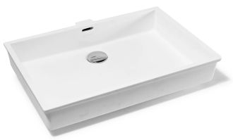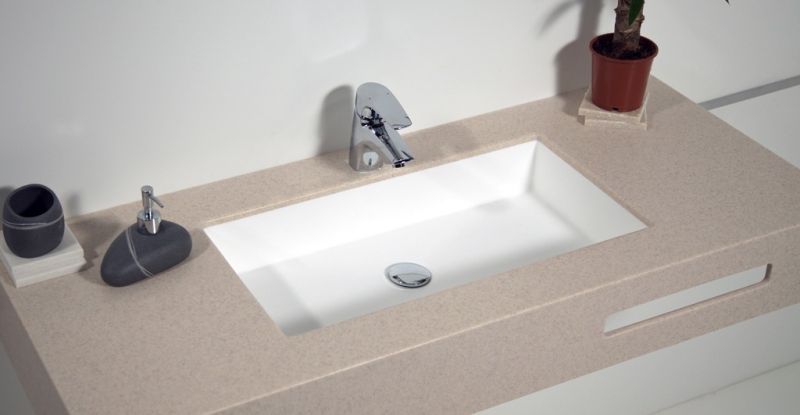 Раковина из искусственного камня для ванной комнаты линейки Montebianco Castello Uno / Castello Due. Практичной прямоугольной формы со смещенным от центра сливным отверстием. Имеет перелив – нередко определяющий фактор выбора раковины. Бесшовно вклеивается в столешницу любого цвета, создавая цельную поверхность, смотрится как единое изделие. Эта особенность расширяет границы использования Castello Uno: вариации цветового решения столешницы, ее размера и формы позволяют реализовать любую дизайнерскую задумку. Уход за раковиной из искусственного камня прост: в большинстве случаев достаточно протереть поверхность влажной губкой с чистящим средством. Материал не впитывает влагу, не порист, непроницаем для плесени, бактерий и грибков. Castello Uno имеет матовую, бархатистую поверхность. Полимерный материал принимает температуру окружающей среды, поэтому в жилом пространстве данная модель раковины всегда будет приятной на ощупь. Отличие Castello Uno от Castello Due – в размерах, наличии перелива у Castello Uno, а также вариантах установки (Castello Due устанавливается как на столешницу или мебель сверху, так и путем вклейки).