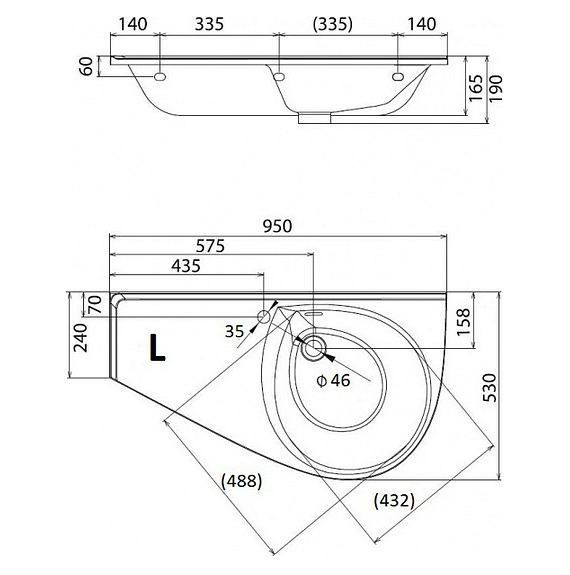 Умывальник с удобным моющим пространством и местом для вещей предназначен, прежде всего, для установки над ванной.