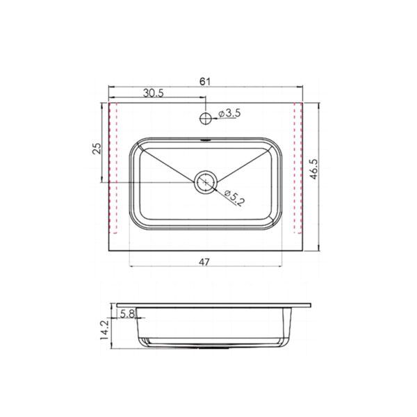 610x140x470Отверстия под смеситель: