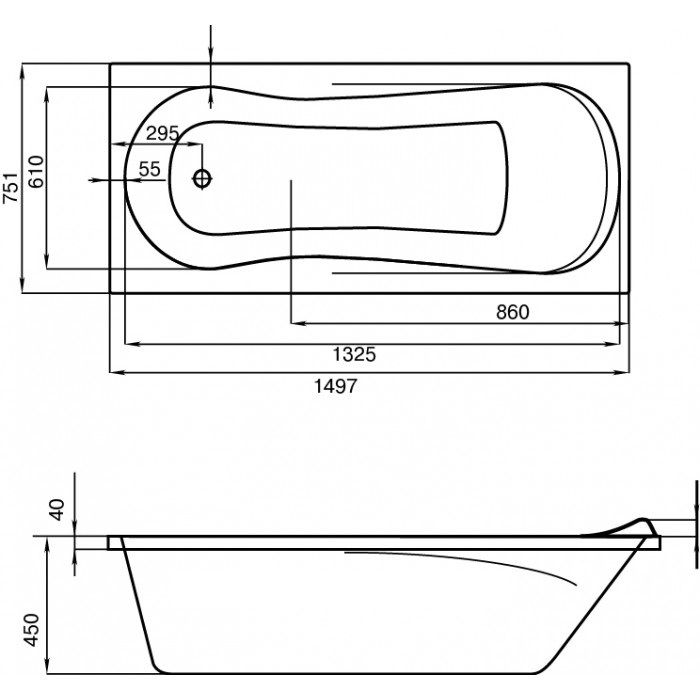 - Отдельно приобретается монтажный комплект: каркас, система слив-перелив с сифоном, крепления ванны к стене и комплект креплений фронтальной панели.