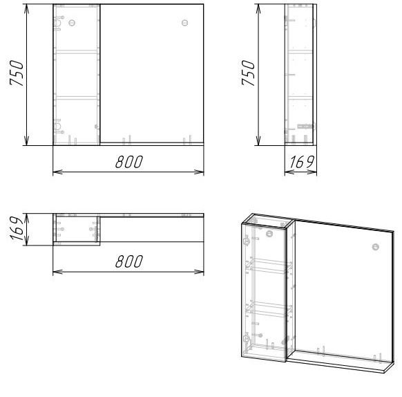 Зеркальный шкаф изготовлен из ЛДСП, устойчив к механическим воздействиям, перепадам температур и высокой влажности.