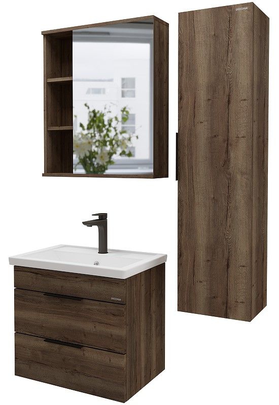 Шкаф-зеркало Форта 70 см - роскошная текстура и темный цвет дуба придают зеркалу сочетание современного дизайна.
