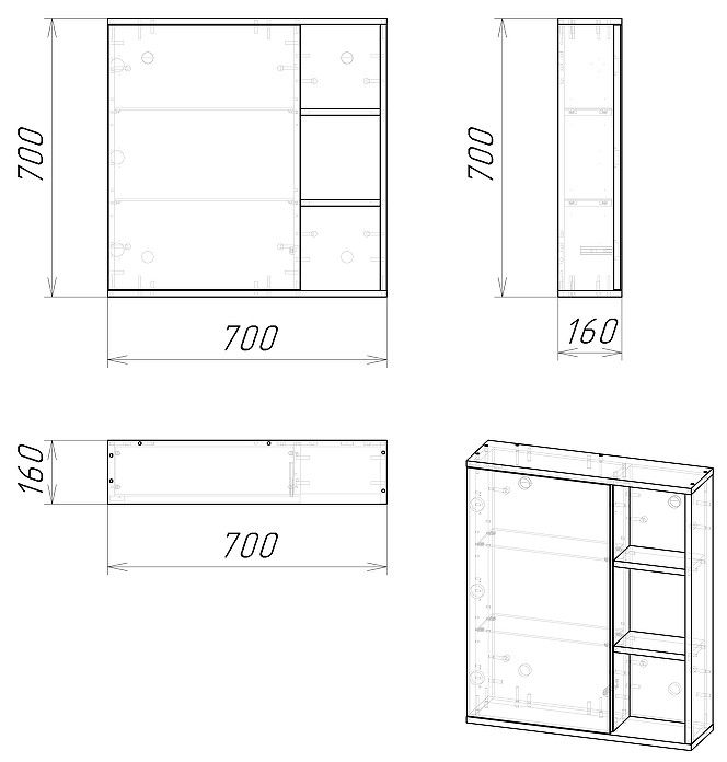 Шкаф-зеркало имеет универсальную ориентацию: верх и низ шкафа можно менять местами, а дверца может открываться как влево, так и вправо.