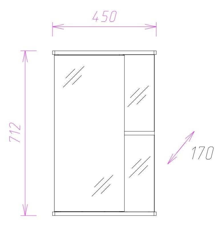 Корпус шкафа-зеркала выполнен из ЛДСП, фасад - из ЛДСП и ЛМДФ в пленке, устойчивых к механическим воздействиям, перепадам температур и высокой влажности.
