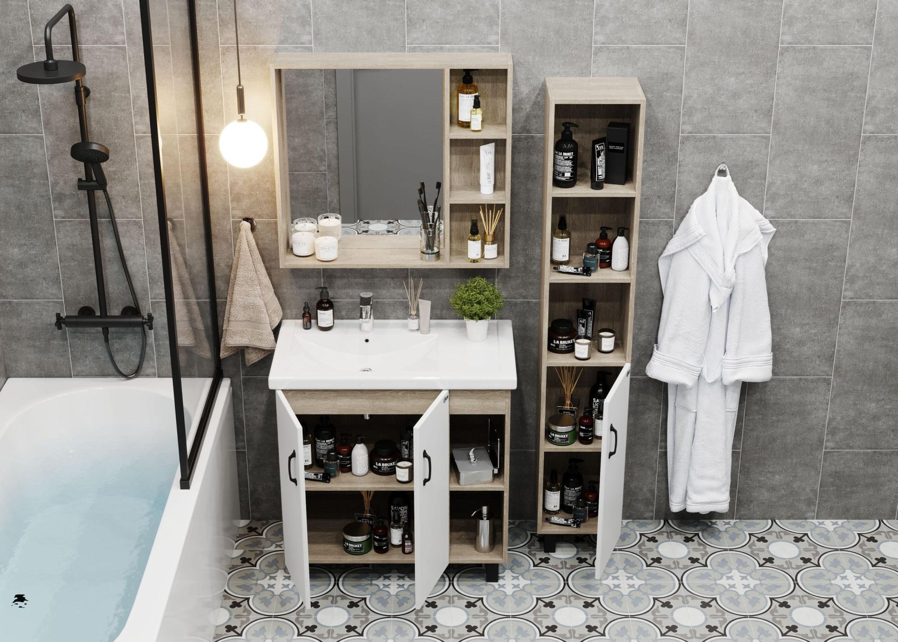Зеркальный шкаф Onika ТИМБЕР 80 отражает современные тенденции в дизайне мебели для ванных комнат: минимализм с простыми и понятными формами, цвета дуба с роскошной текстурой, отсутствие лишних деталей.