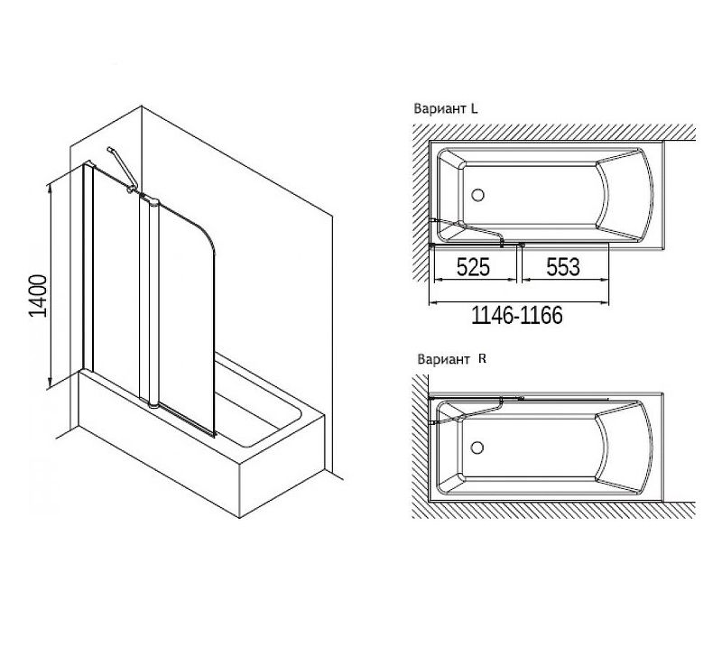 Шторка для ванны Koller Pool Waterfall Line QP95(left) chrome,clear