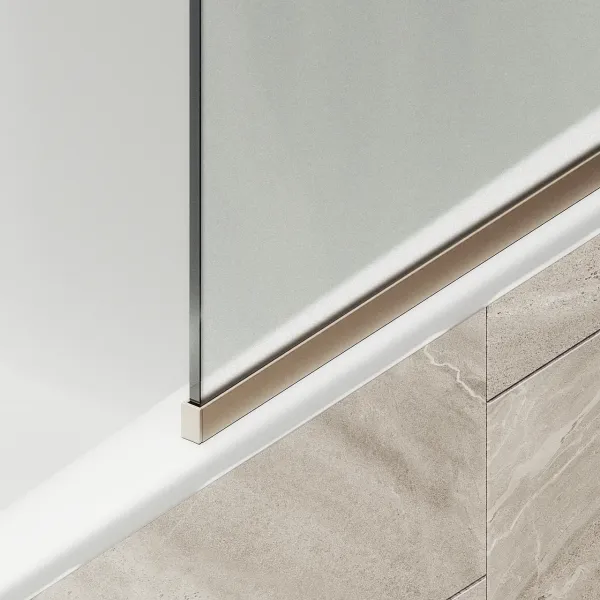 Монтаж осуществляется с помощью алюминиевого профиля, что обеспечивает надежность крепления и безопасность использования стеклянной перегородки для ванной. Также, шторка оснащена специальным уплотнителем, который предотвращает попадание воды на пол ванной комнаты. Закаленное стекло, цвет Сатин, толщина 6 мм 1400х640 мм - 1 шт.