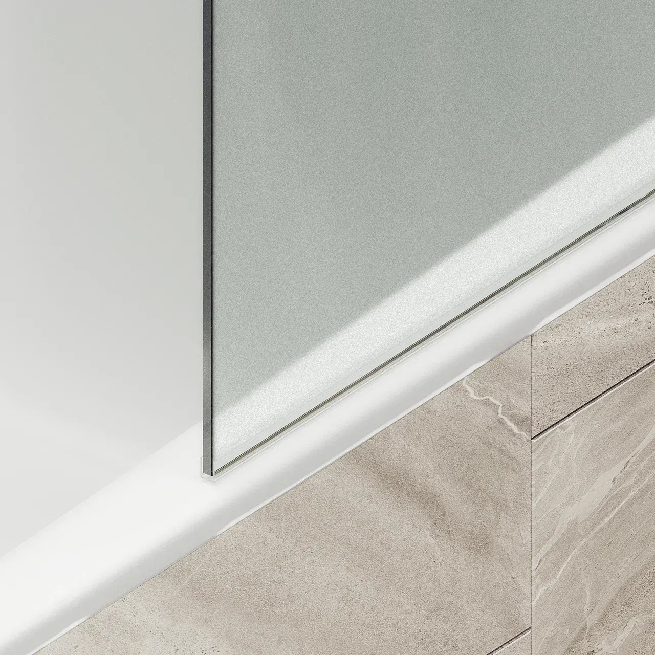 Монтаж осуществляется с помощью алюминиевого профиля, что обеспечивает надежность крепления и безопасность использования стеклянной перегородки для ванной. Также, шторка оснащена специальным уплотнителем, который предотвращает попадание воды на пол ванной комнаты. Закаленное стекло, цвет Сатин, толщина 8 мм 1400х900 мм - 1 шт.