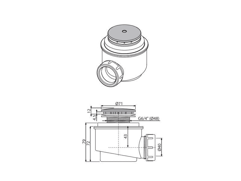 • Для душевых поддонов со сливным отверстием Ø52 мм