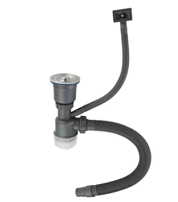 GF-01 нерж Сифон одинарный  для мойки из нерж. стали, с переливом и корзинкой для мусора
