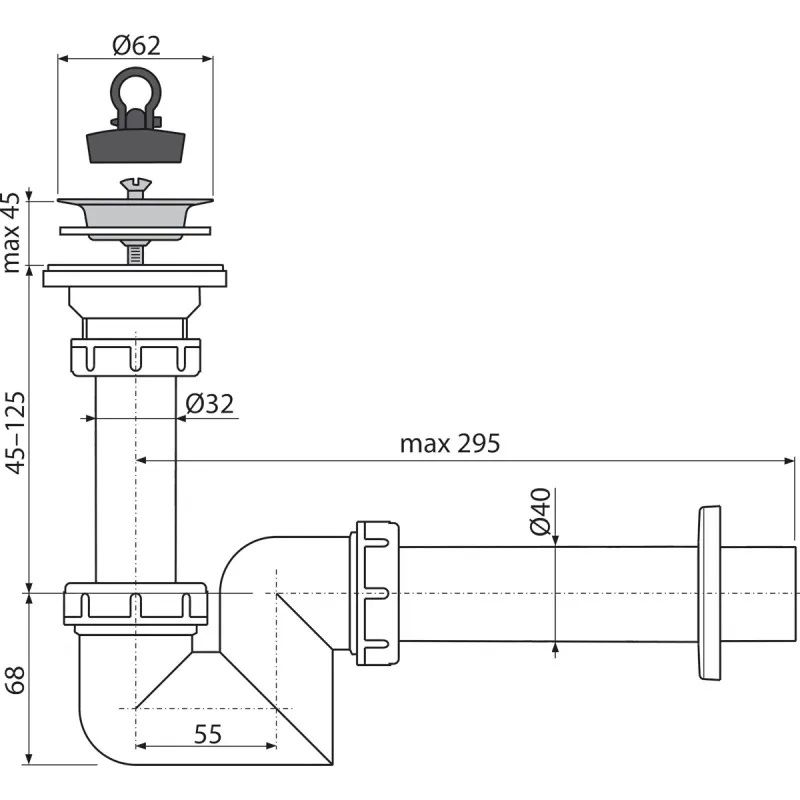Сифон для раковины AlcaPlast ?40 с нержавеющей решеткой ?63 A412-DN40