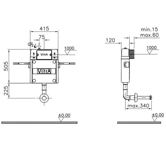 Встраеваемый скрытый бачок VitrA для установки за гипсокартонной перегородкой и перед капитальной стеной.
