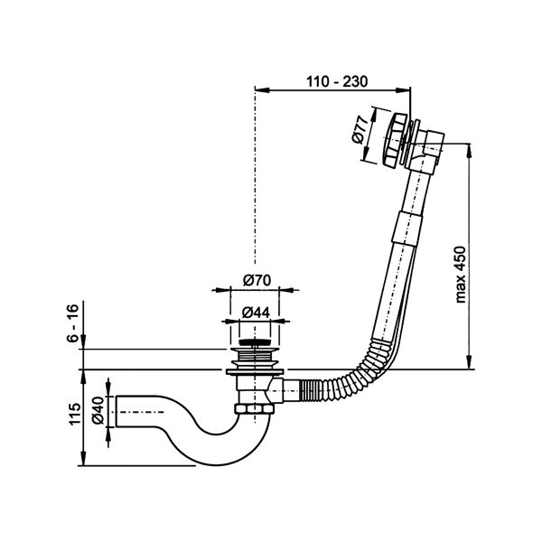 • Корпус слив перелив с раздвижной соединительной трубкой (латунь,медь) - 1 шт.