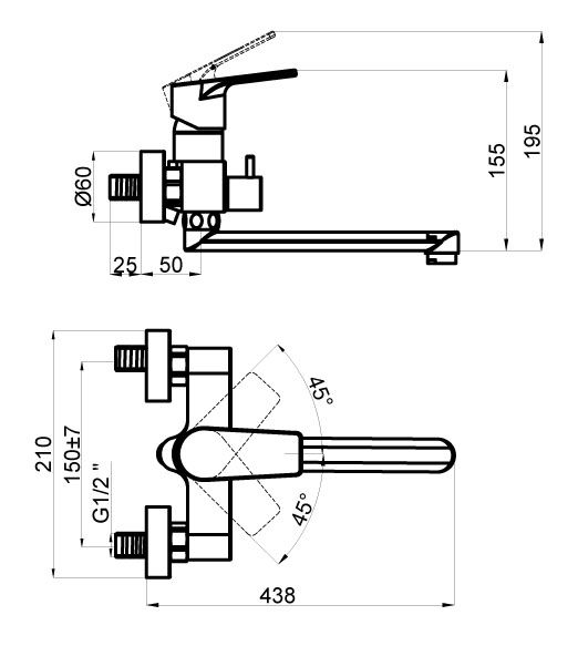 Смеситель AZARIO TREYA AZ-15681721 для ванны с длинным изливом