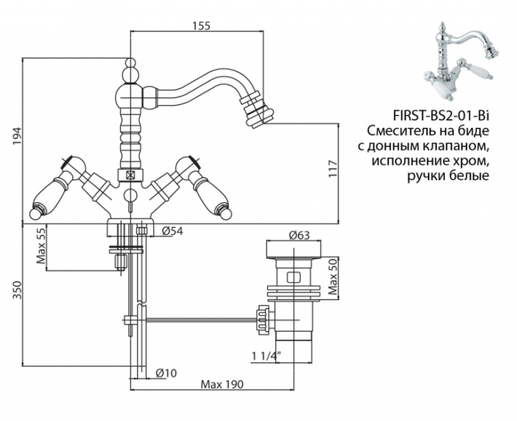 Смеситель для биде Cezares FIRST-BS2-01-M хром купить