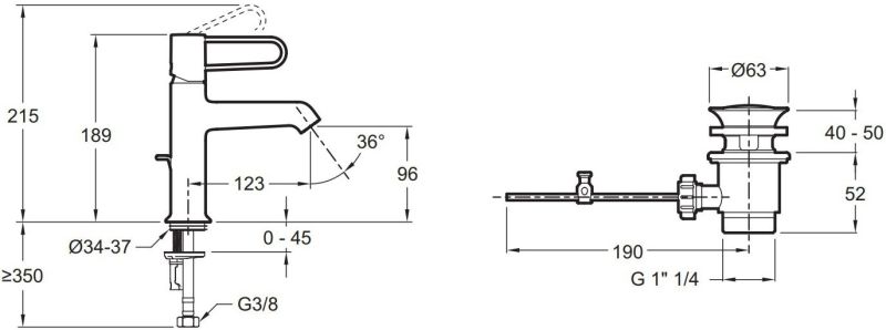 • Керамический дисковый картридж 25 мм интегрирован в корпус смесителя и дает точную регулировку температуры