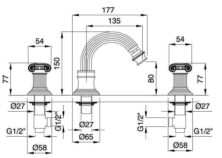 Смеситель для биде на 3 отверстия Cezares OLIMP-BBS2-02-Sw купить