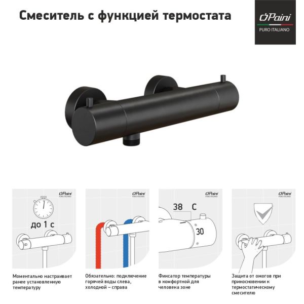 Смеситель для душа Paini Cox 78PZ511TH с термостатом чёрный матовый